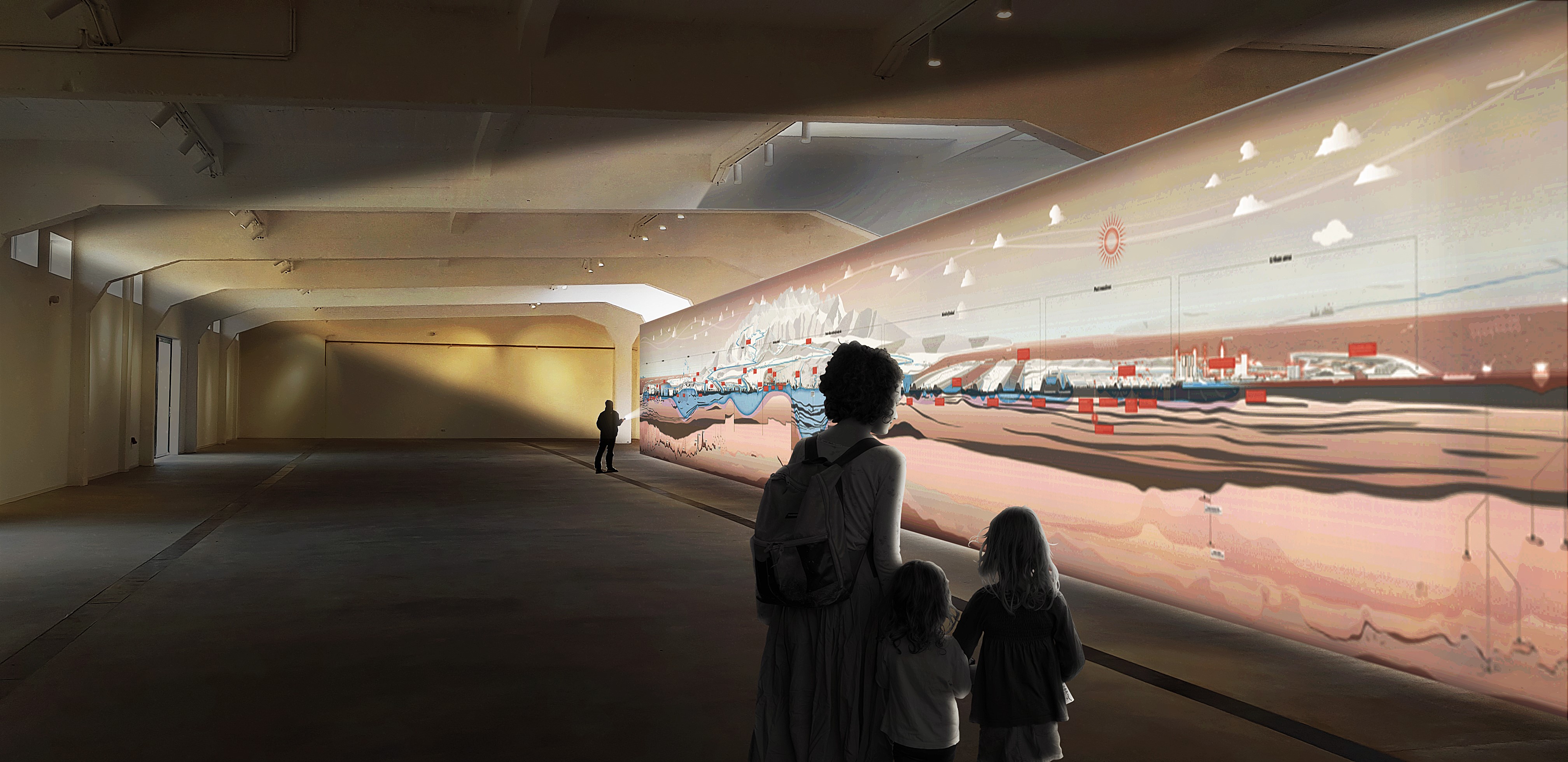 spectaculaire 30 meter brede en 3,5 meter hoge animatie van een doorsnede