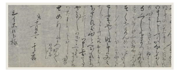 | | Liefdesbrief voor Siebold ontdekt | Lees het verhaal over de ontdekking van de liefdesbrief aan Siebold van Sonogi, de geliefde van Siebold en moeder van zijn dochter O-Ine. Deze ontdekking van promovendus Aafke van Ewijk en professor dr. Ivo Smits is ook in Japan groot nieuws. Volgend jaar is de brief te zien in Japanmuseum SieboldHuis!