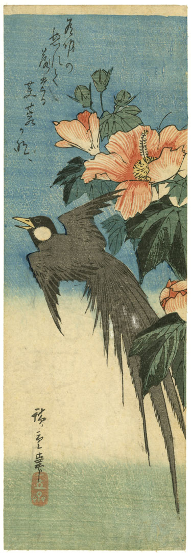 |  | | Long-tailed Bird and Hibiscus | | Utagawa Hiroshige, 1830-1844. Privécollectie | | |