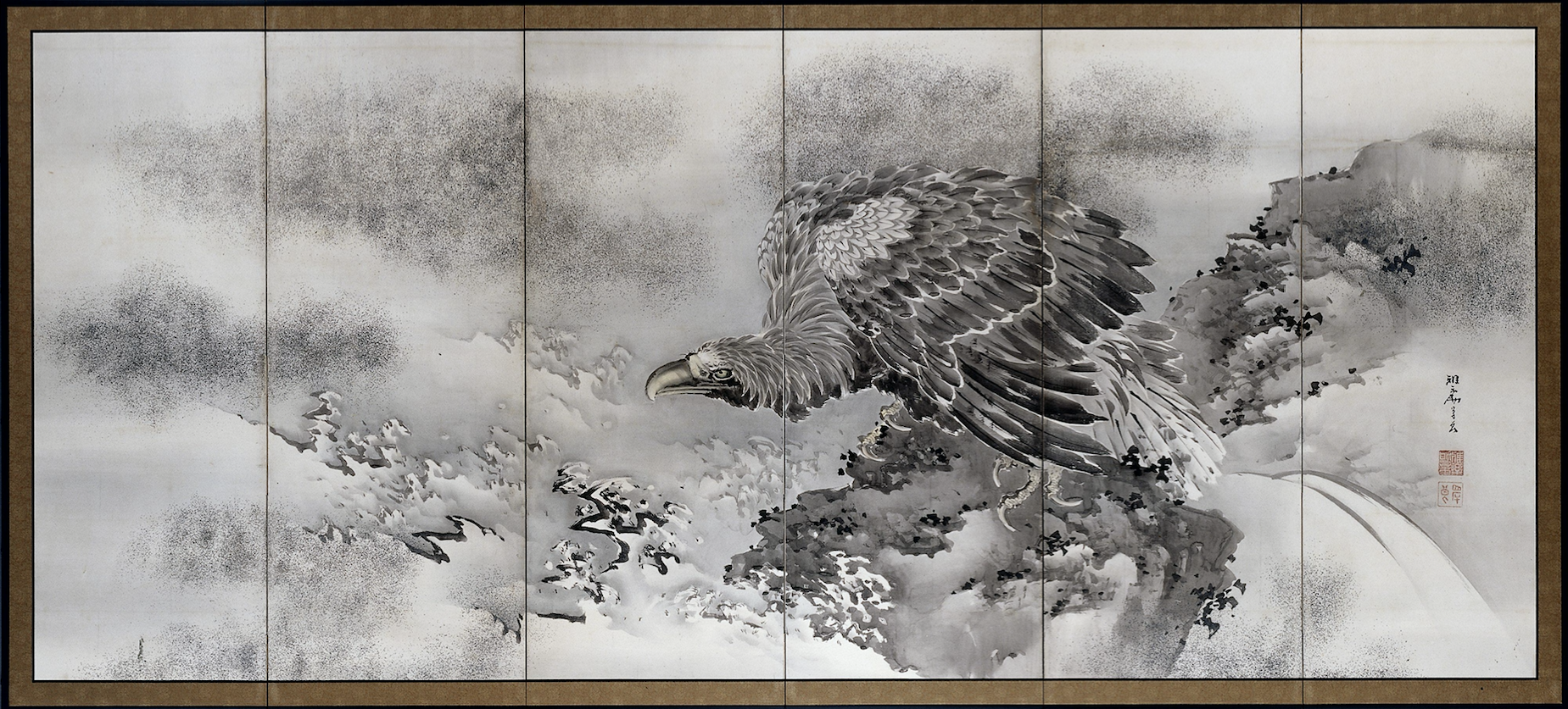De Japanse kunst heeft een rijke traditie in de verbeelding van flora en fauna. Tot aan 17de eeuw werden krachtige, fabelachtige dieren zoals draken, feniksen, leeuw-honden, roofvogels en tijgers strijdlustig afgebeeld. Dit onderwerp veranderde toen de macht van de krijgers (de samoerai) afnam en de stedelijke cultuur zich ontwikkelde. Rijke handelaren zochten naar verfijning en een vriendelijke stijl en in de artistieke verbeelding van de natuur werden lieflijke dieren in subtiele en uitgebalanceerde composities afgebeeld. Bloemen en vogels werden een geliefd onderwerp en niet alleen om de esthetische schoonheid, maar ook vanwege de symbolische functie.